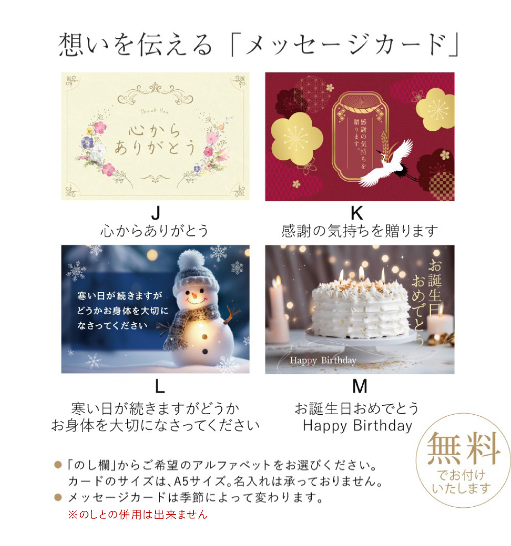 内祝や寒中御見舞、快気祝、粗品等にご利用下さい。