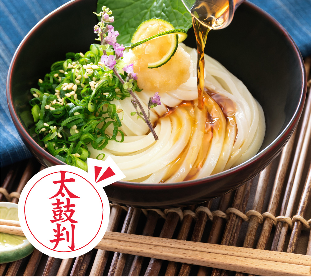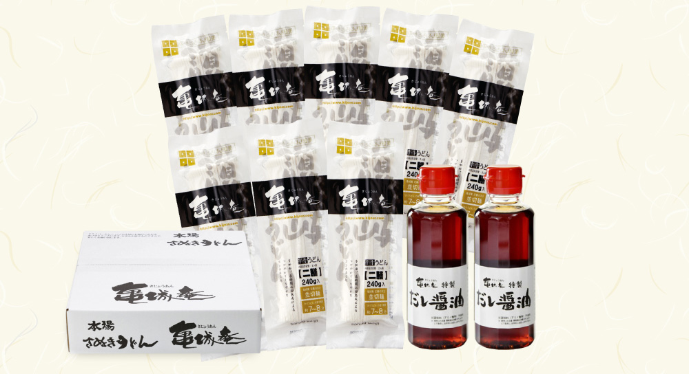 お取り寄せ情報サイトおとりよせネットにて「審査員太鼓判商品」認定の麺を楽しむ本場の食べ方セットです。うどんの味を引き立てる亀城庵オリジナルだし醤油と一緒にお届けいたします。