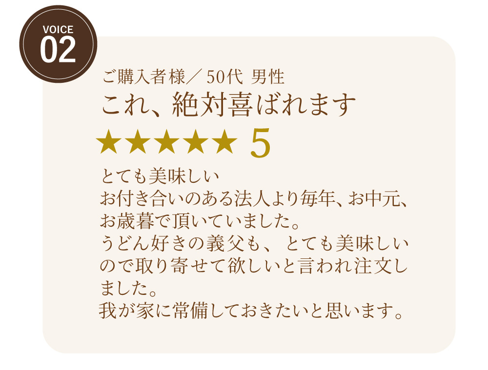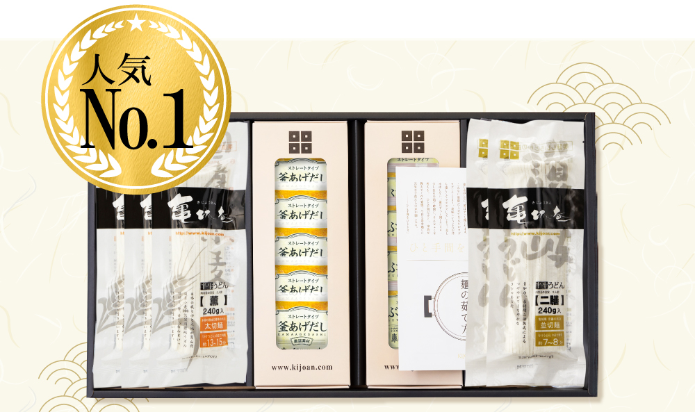 高級感ある化粧箱入りで、大切な方へのご贈答や季節のご挨拶にも最適。ご家庭で茹でたてをお召し上がりいただければ、本場香川で味わうような本格的なうどんをご堪能いただけます。